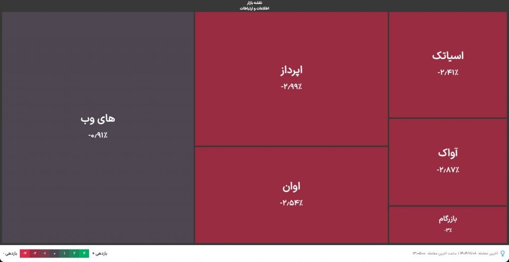 در گروه اطلاعات و ارتباطات بیشتر نماد‌ها قرمز‌پوش بودند.